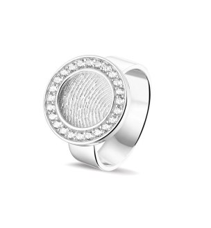 Draag je dierbare altijd bij je met de asring Vingerafdruk Disk. Deze gladde ring draagt een ronde bovenkant waarin de vingerafdruk van een geliefde met zorg wordt vastgelegd. De ring wordt daarnaast verrijkt met Zirkonia's. Het ontwerp is eenvoudig en warm, maar voelt tegelijk heel persoonlijk. Een klein kunstwerk dat elke dag herinnert aan aanraking, nabijheid en het stille weten dat liefde blijft.