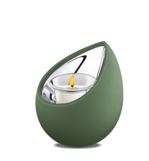 De Traan Mat urn in warme terracottatint voelt aards en vertrouwd aan. De druppelvorm herinnert aan een traan van gemis, maar ook aan de stroming van het leven. Bovenin is een theelichthouder verwerkt, waarin een kaarsje mag branden als stil gebaar van verbondenheid.